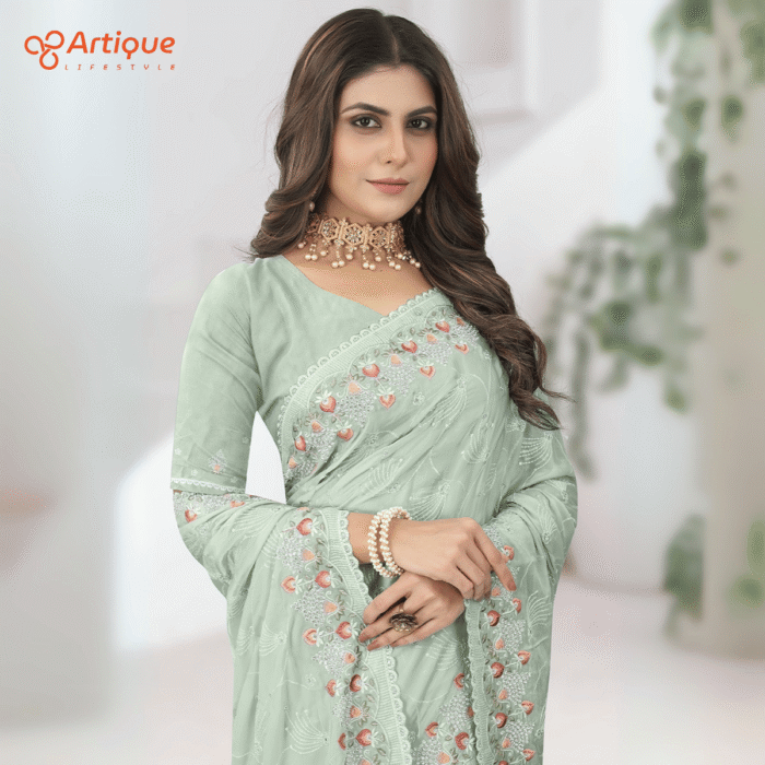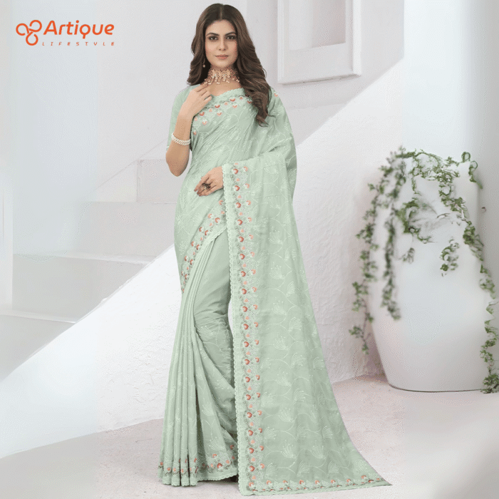 এক্সক্লুসিভ ইন্ডিয়ান ভিসকোস এমব্রয়ডারি করা পার্টি শাড়ি