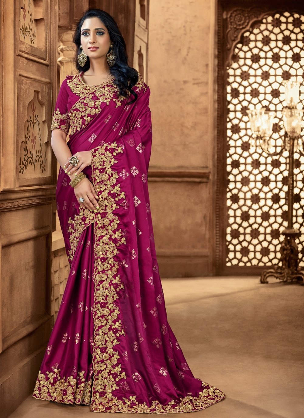 এই কালারের শাড়িটি ইন্ডিয়ান ওয়েটলেস সফট জর্জেট ফ্যাব্রিক দিয়ে তৈরী করা এবং সম্পূর্ণ শাড়ি মেজেন্ডা ও জরি কালার সুতার এমব্রয়ডারি কাজ এটিকে আরও আকর্ষণীয় করে তোলে এবং যেকোনো বিশেষ অনুষ্ঠানের পরিধানের জন্য উপযুক্ত।