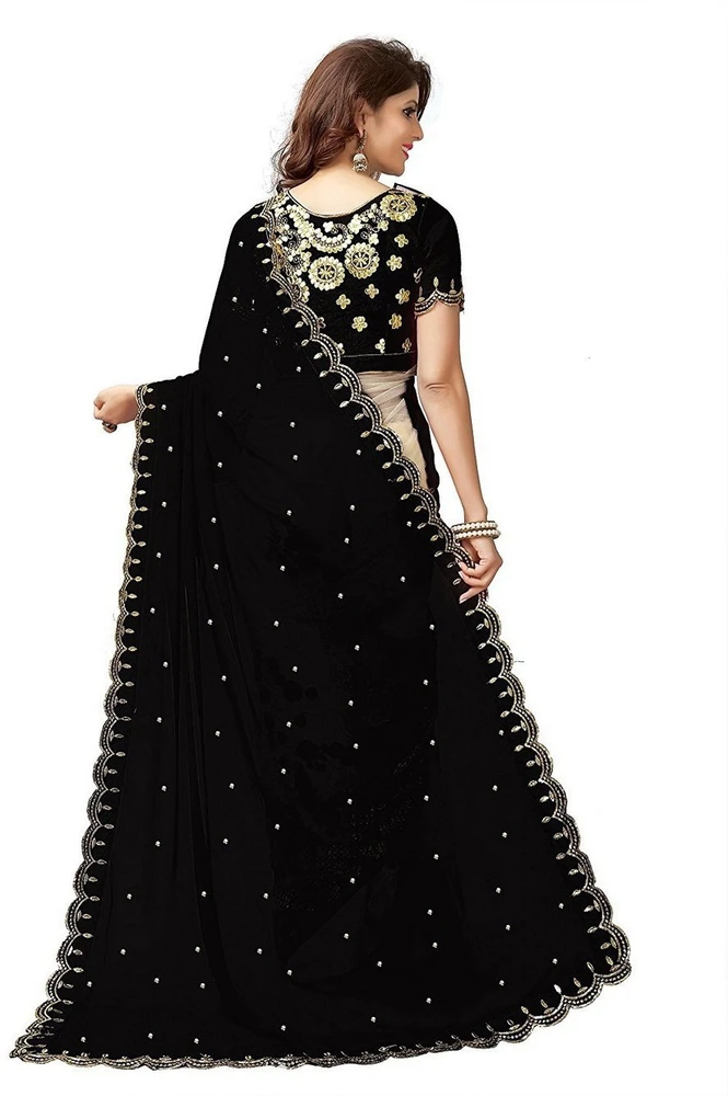 এই কালারের শাড়িটি ইন্ডিয়ান ওয়েটলেস সফট জর্জেট ফ্যাব্রিক দিয়ে তৈরী করা এবং সম্পূর্ণ শাড়ি কালো ,বিস্কেট এমব্রয়ডারি কাজ এটিকে আরও আকর্ষণীয় করে তোলে এবং যেকোনো বিশেষ অনুষ্ঠানের পরিধানের জন্য উপযুক্ত।