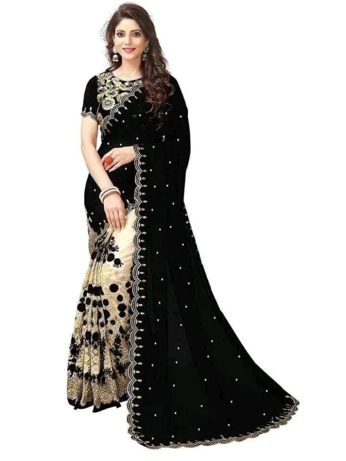 এই কালারের শাড়িটি ইন্ডিয়ান ওয়েটলেস সফট জর্জেট ফ্যাব্রিক দিয়ে তৈরী করা এবং সম্পূর্ণ শাড়ি কালো ,বিস্কেট এমব্রয়ডারি কাজ এটিকে আরও আকর্ষণীয় করে তোলে এবং যেকোনো বিশেষ অনুষ্ঠানের পরিধানের জন্য উপযুক্ত।