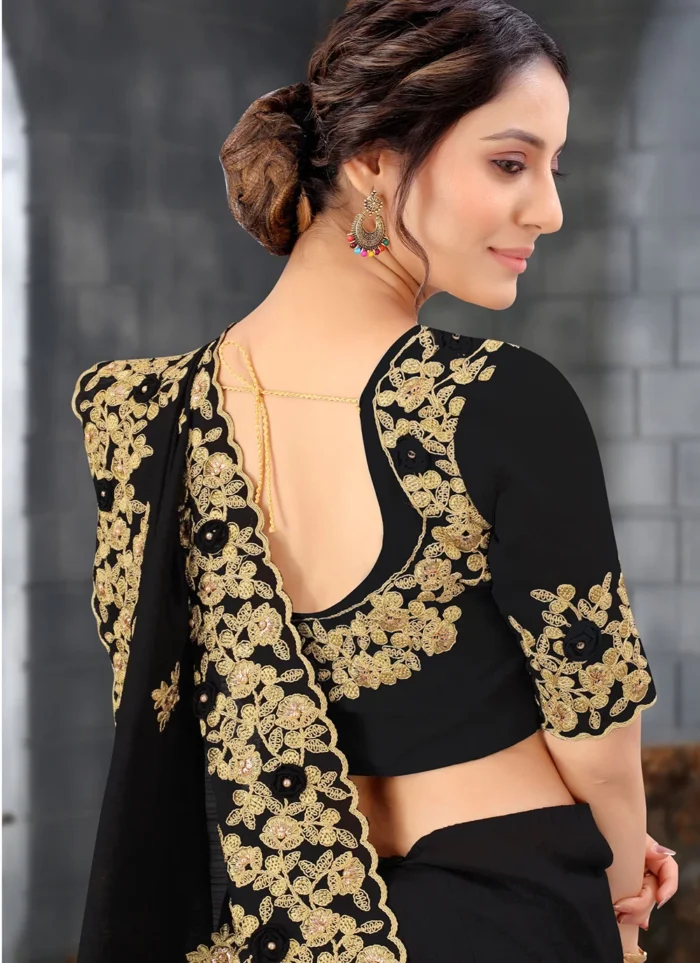 এক্সক্লুসিভ ওয়েটলেস জর্জেট এমব্রয়ডারি করা শাড়ি