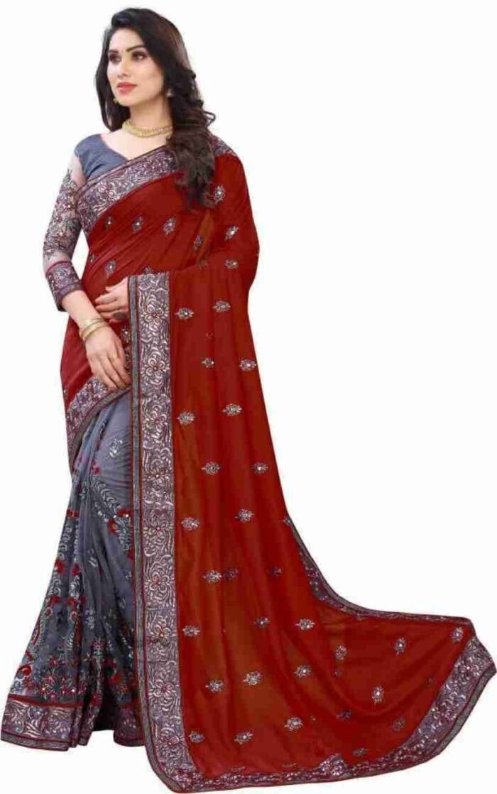 এই মেরুন কালারের শাড়িটি ইন্ডিয়ান ওয়েটলেস সফট জর্জেট ফ্যাব্রিক দিয়ে তৈরী করা এবং সম্পূর্ণ শাড়ি মেরুন ও জরি কালার সুতার এমব্রয়ডারি কাজ এটিকে আরও আকর্ষণীয় করে তোলে এবং যেকোনো বিশেষ অনুষ্ঠানের পরিধানের জন্য উপযুক্ত।