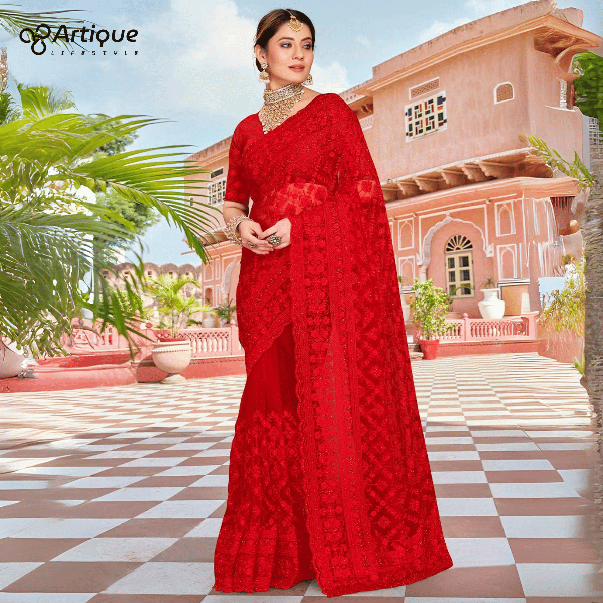 এই লাল কালারের শাড়ি টি প্রিমিয়াম অর্গানজা ফ্যাব্রিক দিয়ে তৈরী করা এবং সম্পূর্ণ শাড়ির আঁচল ও কুঁচি জুড়ে ম্যাচিং সুতার এমব্রয়ডারি কাজ এটিকে আরও আকর্ষণীয় করে তোলে এবং যেকোনো বিশেষ অনুষ্ঠানের পরিধানের জন্য উপযুক্ত।