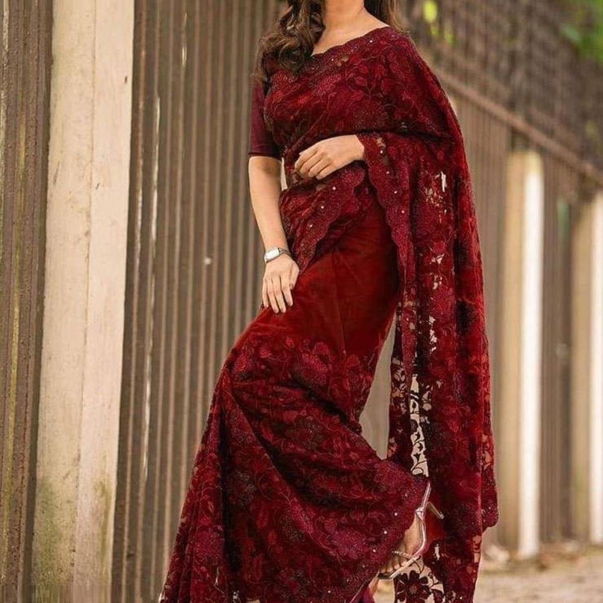 এই কালারের শাড়িটি প্রিমিয়াম অর্গানজা ফ্যাব্রিক দিয়ে তৈরী করা এবং সম্পূর্ণ শাড়ির আঁচল ও কুঁচি জুড়ে ম্যাচিং কালার সুতার এমব্রয়ডারি কাজ এটিকে আরও আকর্ষণীয় করে তোলে এবং যেকোনো বিশেষ অনুষ্ঠানের পরিধানের জন্য উপযুক্ত।