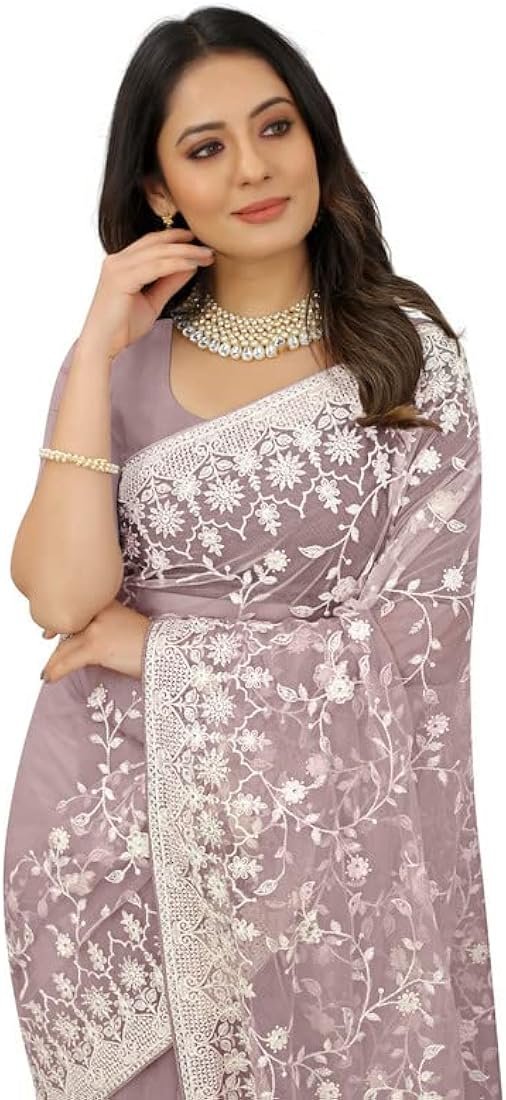 প্রিমিয়াম অর্গানজা ফ্যাব্রিক এমব্রয়ডারি করা পার্টি শাড়ি