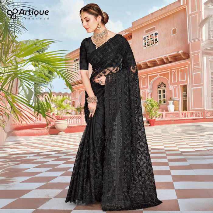 এই কালো কালারের শাড়ি টি ইন্ডিয়ান ওয়েটলেস সফট চিনিগুড়া ফ্যাব্রিক দিয়ে তৈরী করা এবং সম্পূর্ণ শাড়ির আঁচল ও কুঁচি জুড়ে কালো কালার সুতার এমব্রয়ডারি কাজ এটিকে আরও আকর্ষণীয় করে তোলে এবং যেকোনো বিশেষ অনুষ্ঠানের পরিধানের জন্য উপযুক্ত।